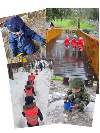 Vi er også veldig glad i å være ute og være på tur. Det er masse spennende å gjøre både inne i barnehagen og på tur og vi er veldig flinke å gå!