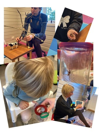 Gjennom temaarbeid får vi masse ideer til leken vår og barnehageåret 2024-2025 har vi jobbet med noen av bøkene til Eric Carle. På høsten jobbet vi med "Den veldig travle edderkoppen" og på våren " Den lille musa leter etter en venn"
